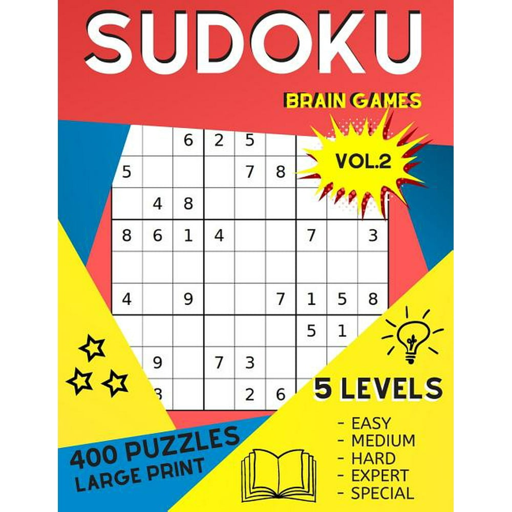 Sudoku Brain Games Vol.2 400 Puzzles Large Print 5 Levels Easy Medium