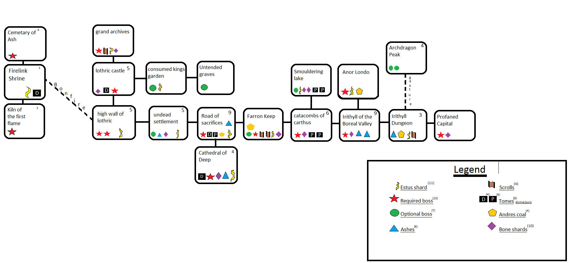 Image Complete Progression Map and Essential Items.png Dark Souls